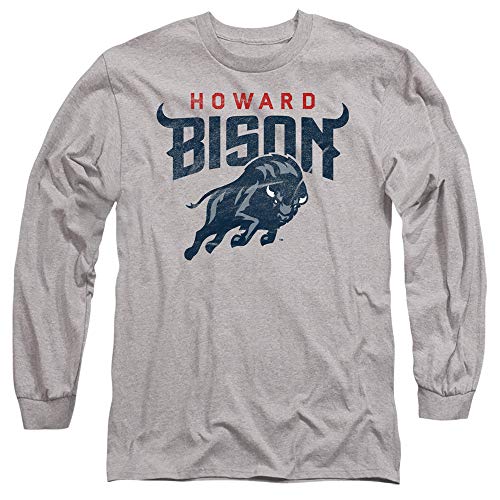 Howard University Official Distressed Primary Unisex Adult Long-Sleeve T Shirt,Athletic Heather, 3X-Large