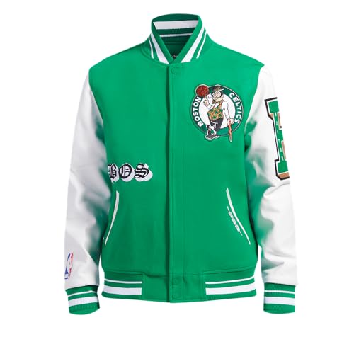 - Made from a premium wool blend, this varsity jacket features faux leather sleeves with ribbed hem, cuffs and collar, making it the perfect layering piece for added style and warmth.