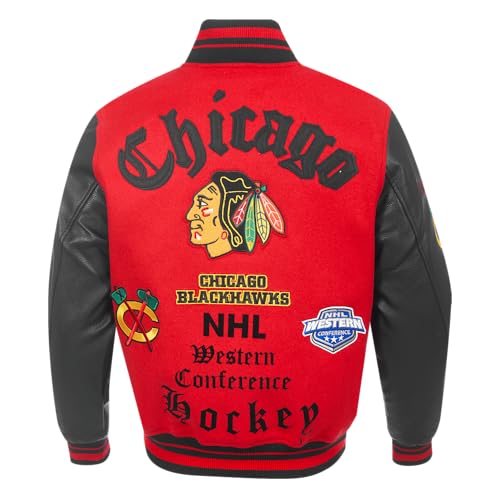 Pro Standard MENS NHL CHICAGO BLACKHAWKS OLD ENGLISH VARSITY JACKET RED/BLACK M