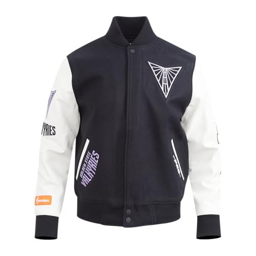 - Made from a premium wool blend, this varsity jacket features faux leather sleeves with ribbed hem, cuffs and collar, making it the perfect layering piece for added style and warmth.