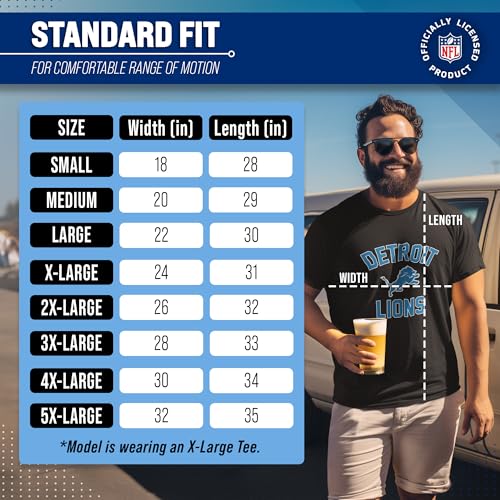 Team Fan Apparel NFL Adult Gameday T-Shirt – Cotton Blend – Tagless – Semi-Fitted – Unleash Your Team Spirit During Game Day (Detroit Lions – Black, X-Large)